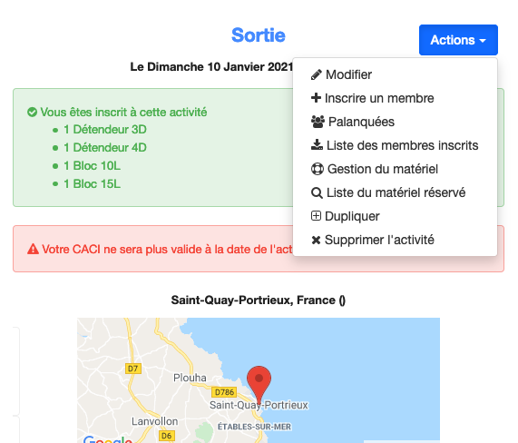 Le materiel porra être réservable par les membres depuis l'agenda lors de leur inscriptions